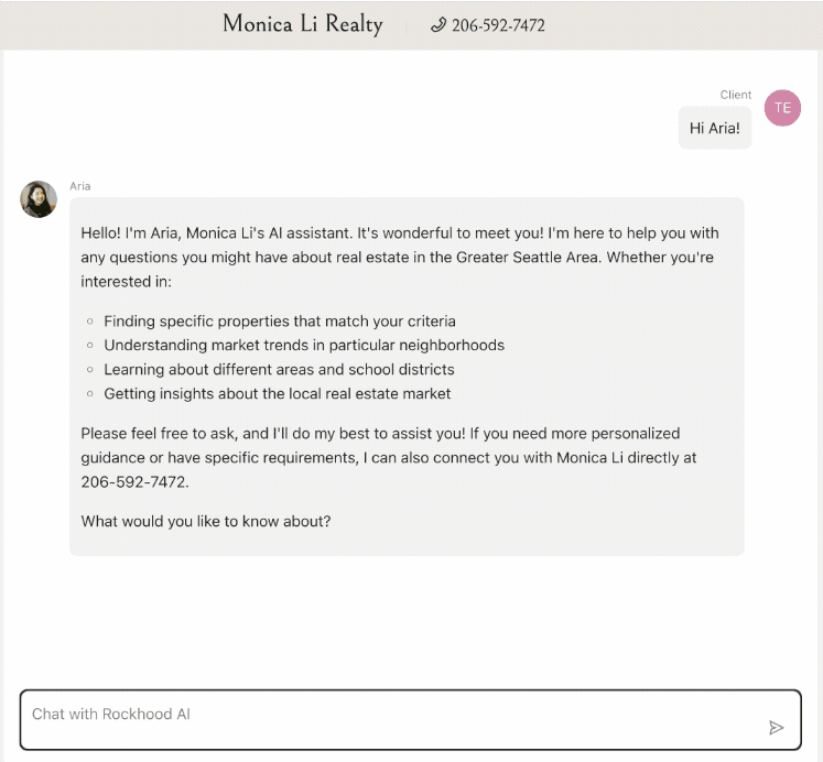 "Working with Rockhood AI has been a game-changer. Aria has transformed how I serve my clients, making their homebuying journey smarter and smoother. I couldn’t be more excited to introduce Aria to more clients!"